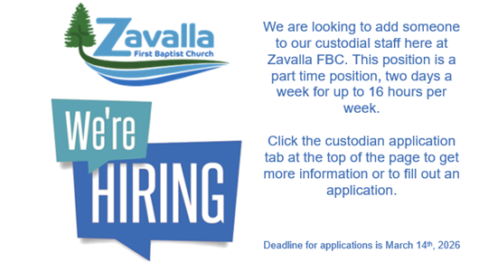If you are visiting or considering relocating to our area, we would love to have you be our guest for Sunday School and worship.We hope you will come as you are and we pray you will leave changed by the grace of Jesus Christ!